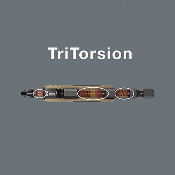 Противоударный держатель с кольцевым магнитом для бит компании Wera серии Impaktor модель 897/4 IMP R надежно и прочно фиксирует даже длинные и тяжелые винты и предназначен для больших моментов силовой нагрузки, например, получаемых от современных ударных шуруповертов 18 Вольт. Он подходит для битов с шестигранным хвостовиком 1/4 дюйма. Длина изделия составляет 75 мм. Его привод соответствует шестиграннику 1/4 дюйма, который также подходит для шуруповертов с патроном. Особый эффект смягчения экстремальных импульсов в держателе происходит за счет наличия двух торсионных зон. Наличие круглого магнита позволяет быстро наживить длинные тяжелые винты и позволяет их держать мертвой хваткой. А если ситуация делает использование магнита в держателе нежелательным, то его можно вывести из рабочей зоны, исключив контакт с винтом. Битодержатель идеально подходит для работы в положении над головой. Он используется преимущественно для завинчивания в ручном режиме с машинным приводом. Изделие обладает повышенной прочностью, а это снижает риски преждевременной поломки и повышает производительность завинчивания с использованием мощных шуруповертов.