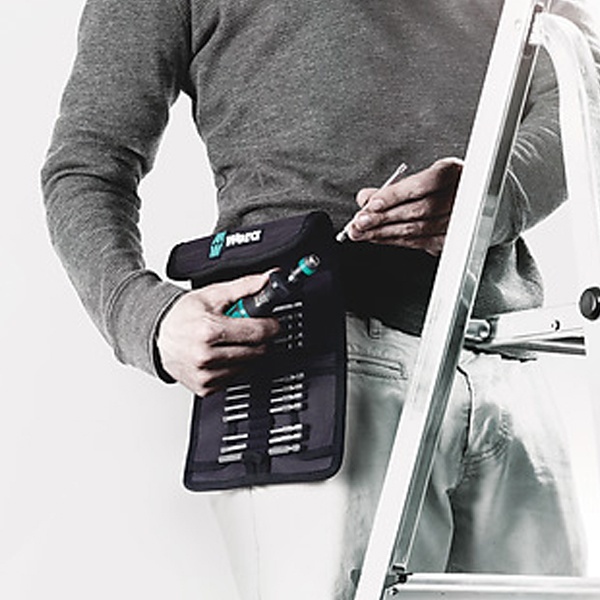 Складная сумка с битами длиной 89 мм. Набор включает ручку-держатель 816 R Kraftform с быстрозажимным патроном "Rapidaptor" и многокомпонентной ручкой Kraftform для малоутомительной работы.