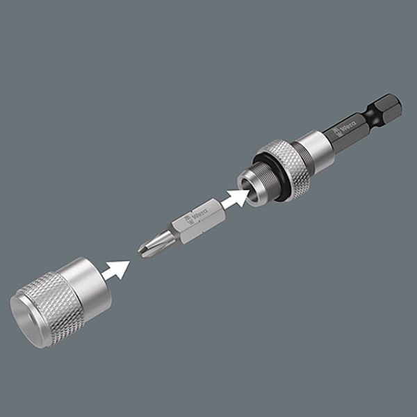 Высококачественный алюминиевый держатель для бит с ограничителем длины известного производителя Wera типа 896/4/1 SB пригоден для зажима насадок с приводом с наружным шестигранником 1/4 дюйма. Изделие служит для плавной регулировки глубины завинчивания шурупов заподлицо. Длина держателя составляет 2 дюйма или 50 мм. Он оснащен втулкой из нержавеющей стали и постоянным сильным магнитом. Его привод соответствует шестиграннику 1/4 дюйма и подходит для винтовертов с зажимом. Чтобы правильно утопить шляпку шурупа в гипсокартоне достаточно настроить глубину завинчивания с помощью ограничителя битодержателя. Магнитное исполнение держателя позволит сэкономить время на замену бит и постоянную их поддержку в держателе и обеспечит более легкое наживление винта. С помощью держателя бит с ограничителем длины можно легко составить любое соединение для работы с ручным или машинным инструментом.