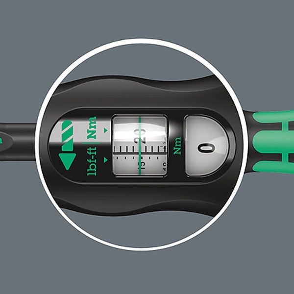 Динамометрический ключ с трещоткой и реверсом производителя Wera серии Click-Torque С 4 предназначен для регулируемой затяжки с точно заданным значением моментом. Он представляет собой трещотку с присоединительным квадратом 1/2 дюйма для торцевой головки. На рукоятке ключа расположена вертикальная и горизонтальная шкала для установки момента затяжки. Длина инструмента равна 595 мм. Диапазон измерения силы затяжки составляет от 60 до 300 Нм, шаг регулировки – 1,0 Нм, погрешность измерения равна 4%. При достижении каждого значения слышны щелчки и на шкале ключа считываются значения момента силы. А при достижении установленного момента силы, надежный механизм разблокировки производит отчетливо слышимый и ощущаемый сигнал-щелчок. Чтобы избежать погрешностей в работе ключа запрещается продолжать затягивать соединение после щелчка. Использование динамометрического ключа поможет избежать ряда проблем и поломок, например, срыв резьбы, предотвращение неплотного соединения узлов и элементов и механическую поломку болтов.