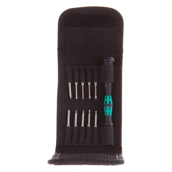 Набор Kraftform Kompakt Micro-Set для тонкой работы. Подходит для битов с хвостовиком 4 мм Halfmoon (тип хвостовика Wera 9) и 4 мм HIOS (тип хвостовика Wera 21). Система "Одна ручка – много насадок" для моментальной смены насадок; ручка Kraftform Micro с подвижной головкой и зоной быстрого вращения для работы отвёрткой в скоростном режиме, не надо тратить время на перехватывание инструмента; зона приложения усилий с мягкими участками служит для передачи больших моментов силы при затяжке и отпуске винтов; прецизионная зона непосредственно перед рабочим концом для выбора правильного угла завинчивания при юстировочных работах; 10 битов для завинчивания в ручном и машинном режимах; моментальная фиксация бита: он просто вставляется в держатель с автоматической фиксацией и надёжной посадкой. Для замены бита нужно только подать вперед стопорное кольцо и извлечь насадку. Гильза свободного хода для простого ведения инструмента в процессе завинчивания.