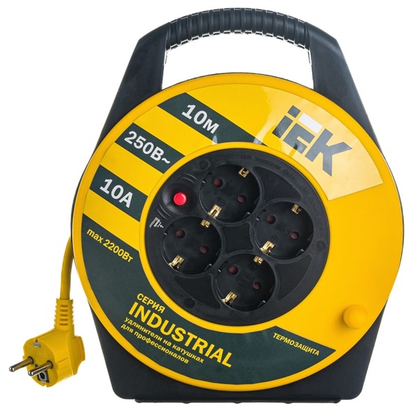 • Удлинитель на барабане ИЭК Industrial 10м 3х1,0мм 10А 4 розетки с термозащитой