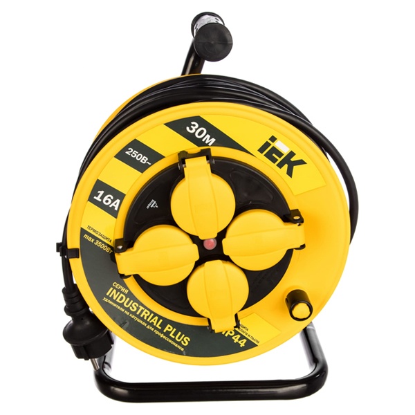 Катушка переносная УК30 серии Industrial Plus длина 30м, 4 розетки 16A с крышками, IP44 ИЭК WKP15-16-04-30-44