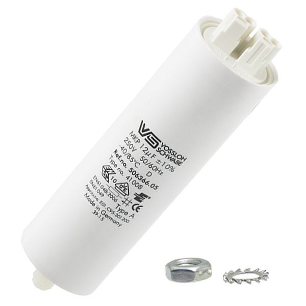 Конденсатор Vossloh Schwabe со значением емкости в 12 мкФ на 250 Вольт, для металлогалогенных и натриевых ламп мощностью 70/100 Ватт 506366.89