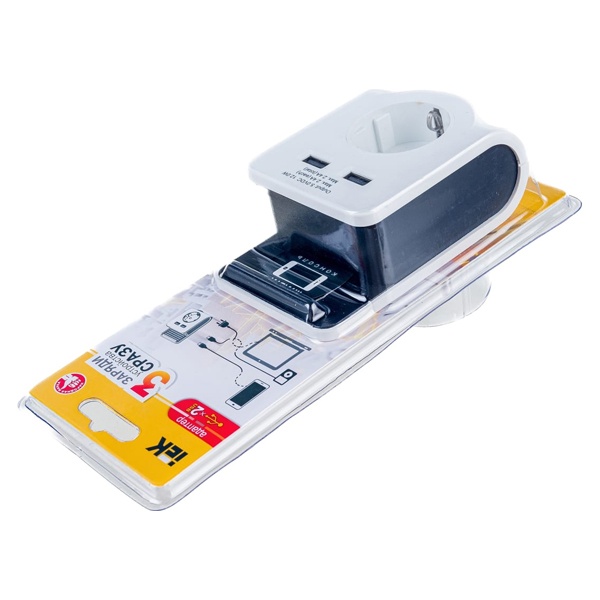 Зарядное устройство 2*USB type A 2400мА с электрической розеткой немецкого стандарта, ИЕК. WTP11-16-01-Z-K01
