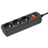 Черный бытовой электрический удлинитель на 3 розетки с заземлением, длина провода 3 метра сечением 3x1 мм2 WYP10-10-03-03-Z-K02-G