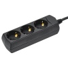 Черный бытовой электрический удлинитель на 3 розетки с заземлением, с выключателем, длина провода 5 метров сечением 3x1 мм2 WYP10-10-03-05-ZK-K02-G