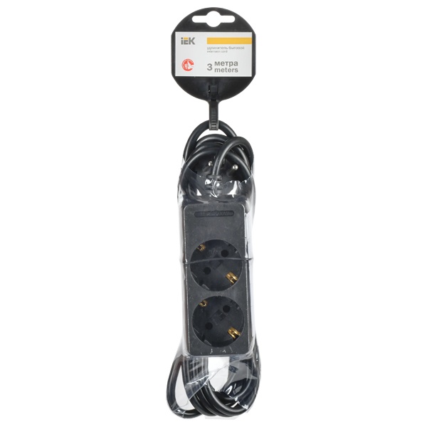 Удлинитель бытовой черного цвета на две розетки с заземлением, длина 3 метра WYP10-16-02-03-Z-K02