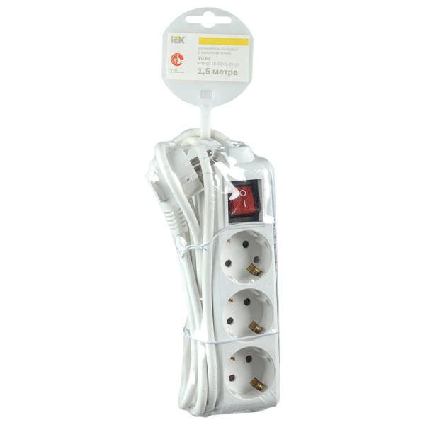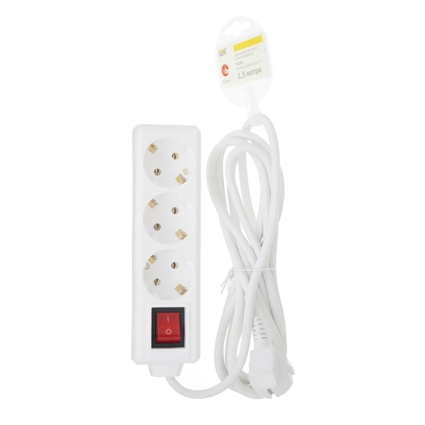 WYP10-16-03-01-ZK-17 Удлинитель ИЭК У03К 3х2P+PE с выключателем 1,5м 3х1мм2 16А/250В белый