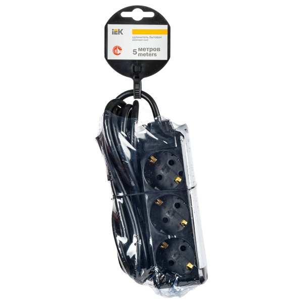 WYP10-16-03-05-Z-K02 Удлинитель ИЭК У03 3х2P+PE 3 розетки с заземлением 5м 3х1мм2 16А/250В черный