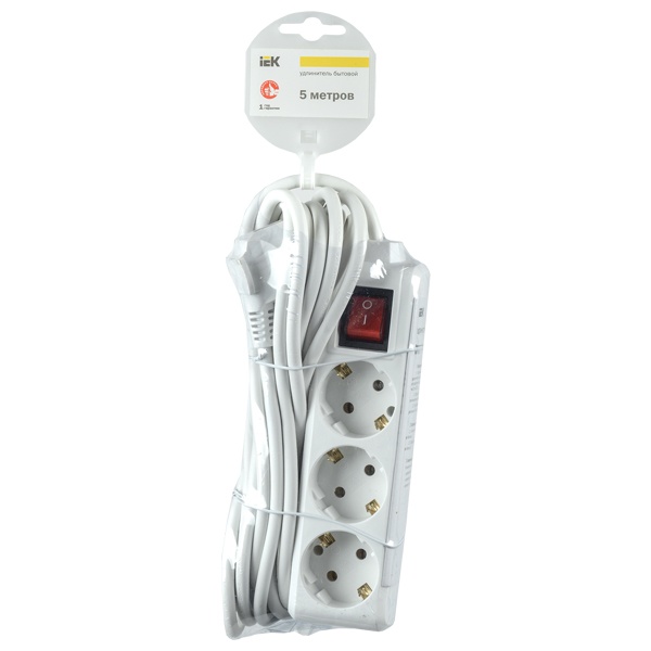 • Удлинитель ИЭК У03К 3х2P+PE с выключателем 5м 3х1мм2 16А/250В белый