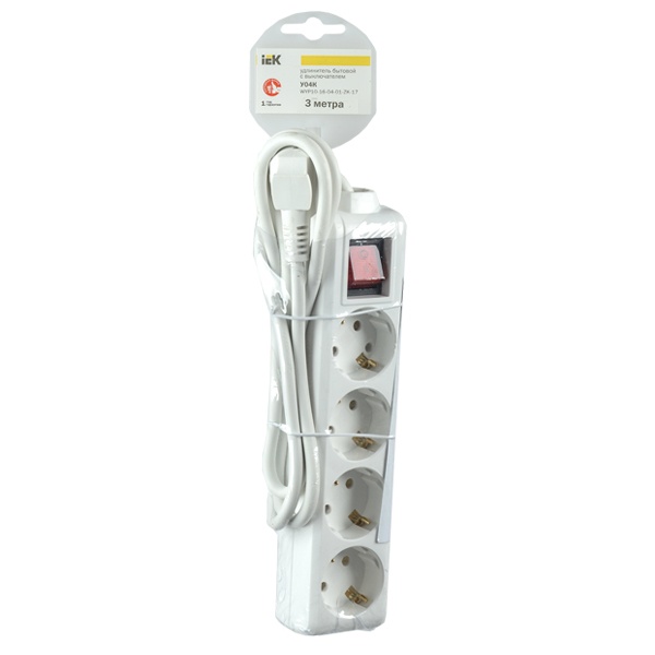 Бытовой удлинитель с выключателем на четыре розетки с заземлением, длина 3 метра WYP10-16-04-03-ZK-N
