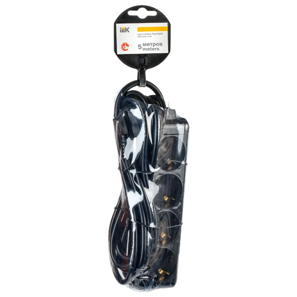 Удлинитель ИЭК У04 4х2P+PE 4 розетки с заземлением 5м 3х1мм2 16А/250В черный WYP10-16-04-05-Z-K02