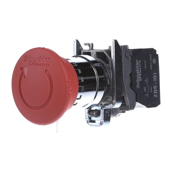 Грибовидная кнопка управления тригерного действия с механической блокировкой и возвратом поворотом XB4BS8445 d22мм 1Н.О.+1Н.З. контакты Sneider Electric XB4BS8445