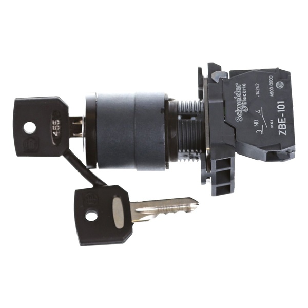 Переключатель с ключом на 2 позиции(90°) с фиксацией XB5AG21 d22мм 1Н.О. контакт Sneider Electric XB5AG21