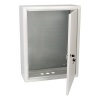 Сварной металлический корпус со съемной монтажной панелью. Дверца корпуса запирается на замок. Ключ замка имеет единый секрет. Корпуса со степенью защиты IP54, имеют на дверце уплотнение из двухкомпонентного герметика и пыле- влагонепроницаемый замок.