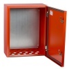 Сварной металлический корпус со съемной монтажной панелью. Дверца корпуса запирается на замок. Ключ замка имеет единый секрет. Корпуса со степенью защиты IP54, имеют на дверце уплотнение из двухкомпонентного герметика и пыле- влагонепроницаемый замок.