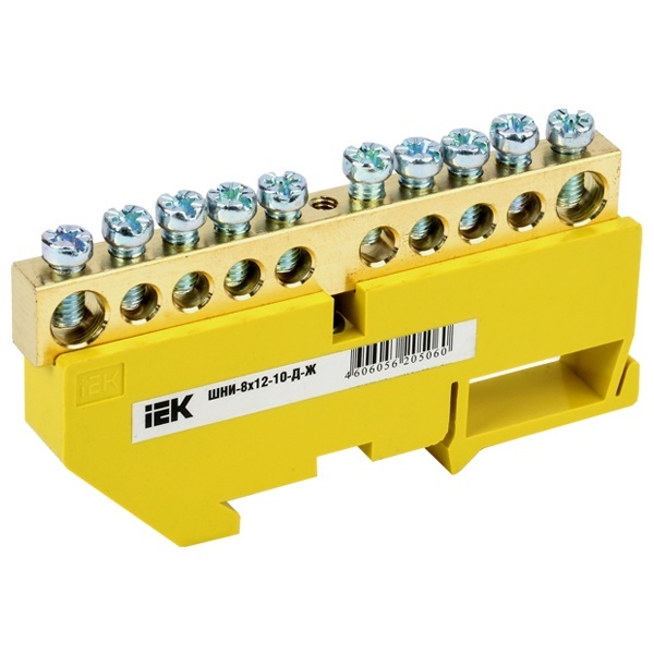 Шина PE "земля" на DIN-изол. ШНИ-8х12-10-Д-Ж IEK YNN10-812-10D-K05