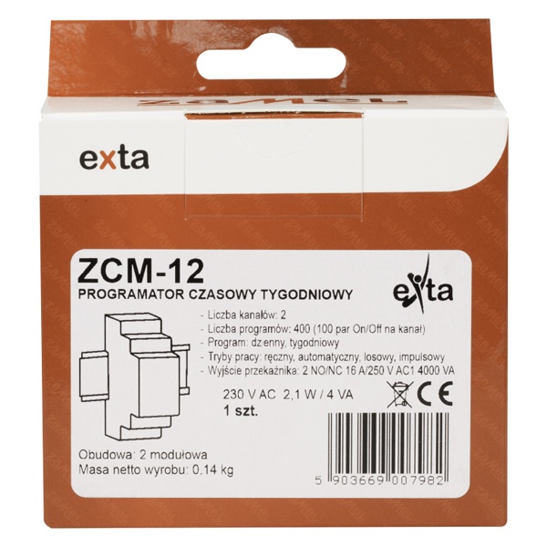 Программатор времени недельный Zamel 2 канала ЖК 16А 200 программ ZCM-12