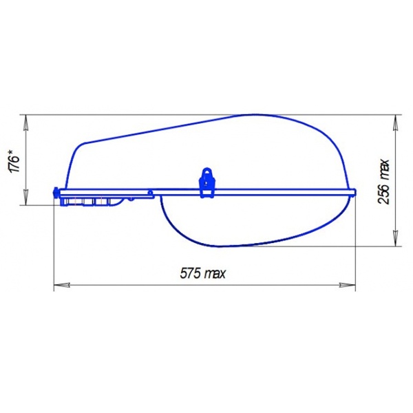 Защитное стекло из светостабилизированного поликарбоната, степень защиты IP53, габаритные размеры 575х297х256мм.