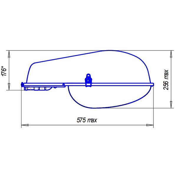 Защитное стекло из светостабилизированного поликарбоната, степень защиты IP53, габаритные размеры 575х297х256мм.