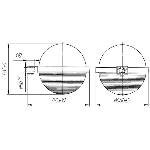 Cветильники ЖКУ/РКУ рекомендуется устанавливать на Г-образных кронштейнах диаметром 45-50 мм под углом 15°